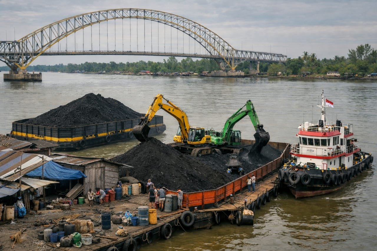 KUKAR – Negara seolah absen di bawah Jembatan Kutai Lama. Saat matahari merunduk di Sungai Mahakam, aktivitas pemuatan batubara ilegal justru berjalan penuh percaya diri. Tanpa sembunyi. Tanpa takut. Seakan hukum hanya papan nama yang tak lagi berlaku.