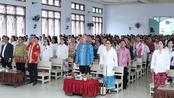 MALINAU – Bupati Malinau, Wempi W. Mawa, menghadiri pengukuhan pengurus Persatuan Wanita Kristen Indonesia (PWKI) Kabupaten Malinau di GKPI Imanuel Tanjung Lapang, Minggu (19/4/2026).
