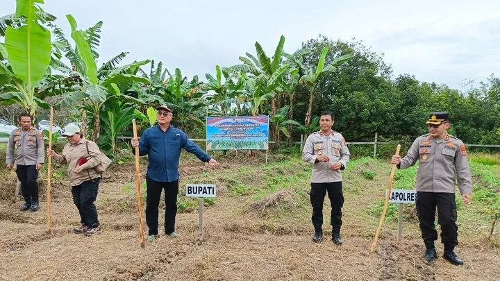 Dalam kegiatan tersebut, Bupati Wempi hadir bersama Kapolres Malinau dan secara simbolis memulai penanaman jagung yang akan dilaksanakan oleh jajaran Polres Malinau sepanjang tahun 2026.