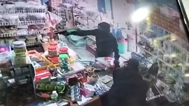 Namun situasi berubah cepat ketika pelaku tiba-tiba mengeluarkan benda mirip pistol dan langsung mengancam penjaga toko.