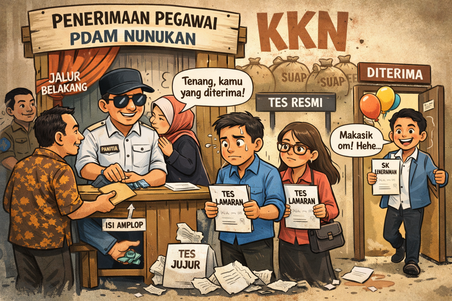 NUNUKAN – Dua belas nama tiba-tiba muncul sebagai pegawai Perusahaan Umum Daerah Air Minum (Perumda) Tirta Taka Nunukan. Tanpa pengumuman. Tanpa seleksi. Tanpa rekam jejak administrasi yang bisa diuji publik.